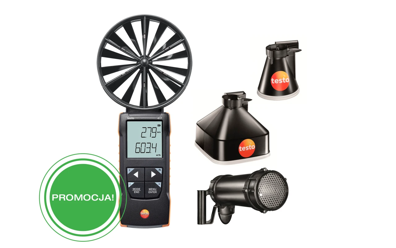 Kompaktowy anemometr wiatraczkowy testo 417 o średnicy 100 mm został zaprojektowany z myślą o maksymalnym ułatwieniu pomiarów na wlotach i wylotach powietrza w systemach klimatyzacji i wentylacji. Dzięki specjalnym zestawom z lejkiem i prostownicą przepływu równie łatwo można go wykorzystać do pomiarów na wylotach wirowych oraz w zrównoważonych systemach wentylacji w budynkach mieszkalnych. W połączeniu z aplikacją testo Smart App urządzenie umożliwia szybką i intuicyjną konfigurację, wyświetlanie wyników (także na drugim ekranie), a także ich zapisywanie i pełną dokumentację – bez zbędnych komplikacji.