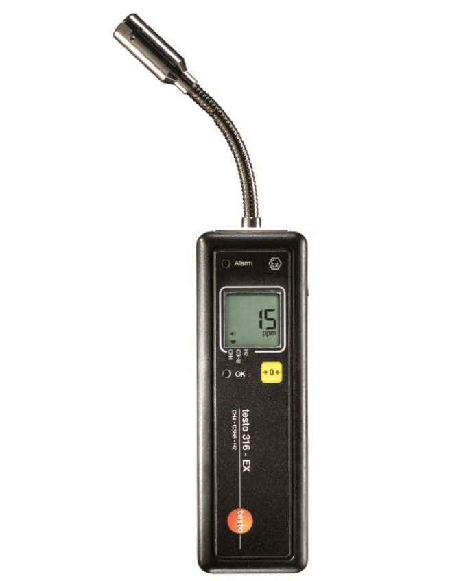 Wykrywa trzy typy gazów: metan, propan i wodór. testo-direct.com+2Testo+2