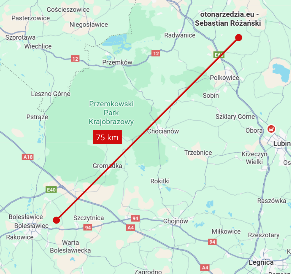 Z centrum Bolesławca do sklepu otonarzedzia.eu w Grębocicach