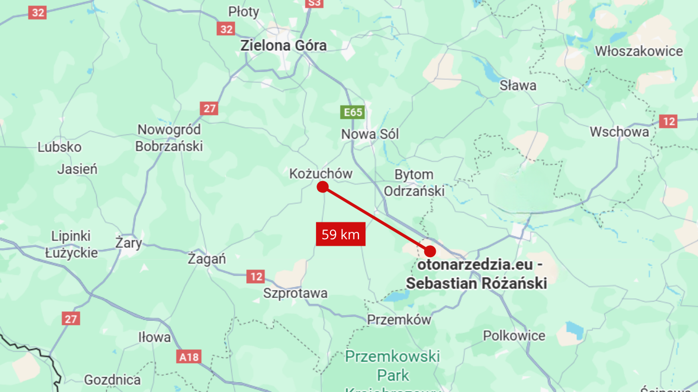 Z centrum Kożuchowa do sklepu otonarzedzia.eu w Grębocicach