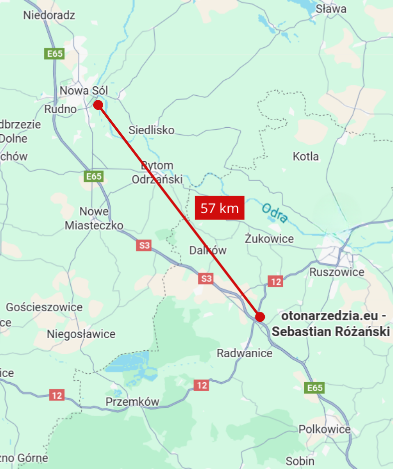 Z centrum Nowej Soli do sklepu otonarzedzia.eu w Grębocicach