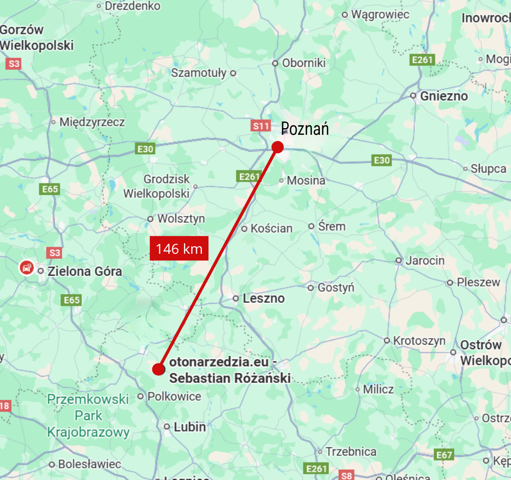 Z centrum Poznania do sklepu otonarzedzia.eu w Grębocicach