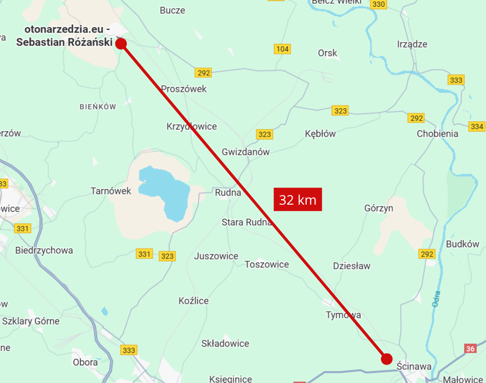 Z centrum Ścinawy do sklepu otonarzedzia.eu w Grębocicach