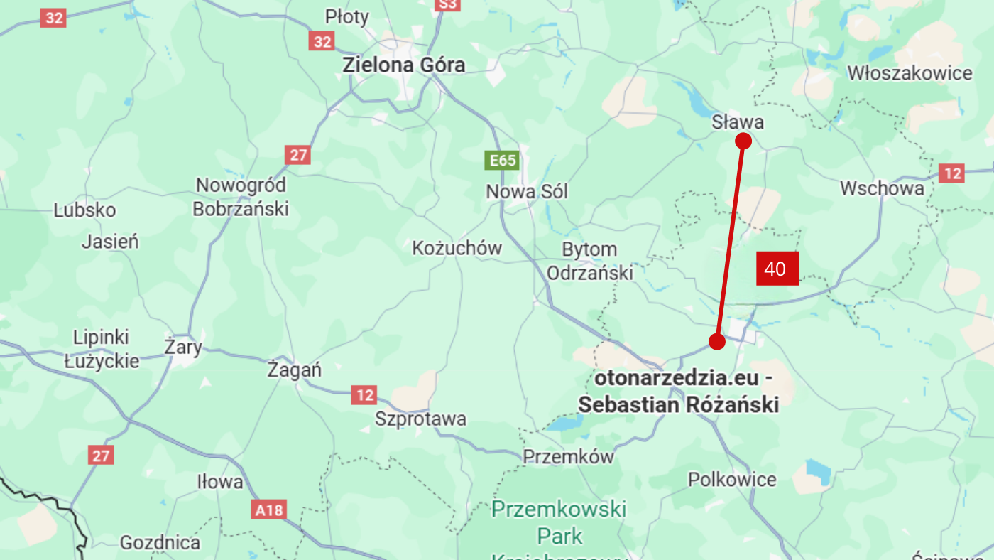 Z centrum Sławy do sklepu otonarzedzia.eu w Grębocicach