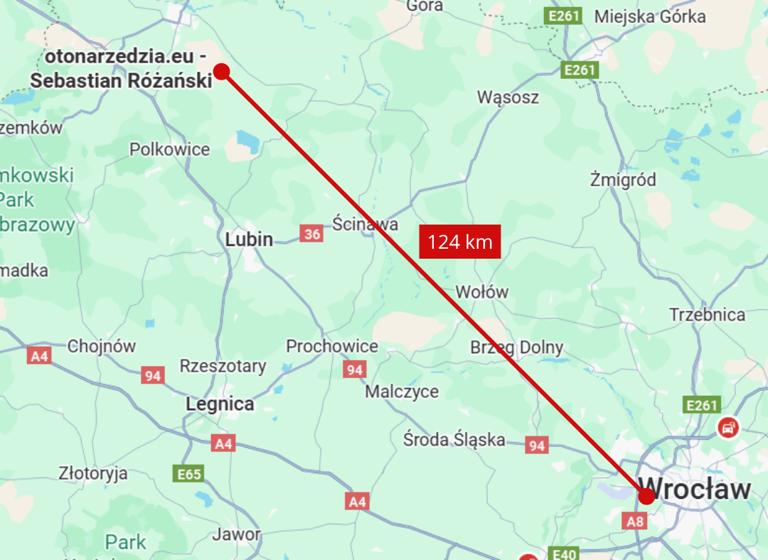 Z centrum Wrocławia do sklepu otonarzedzia.eu w Grębocicach