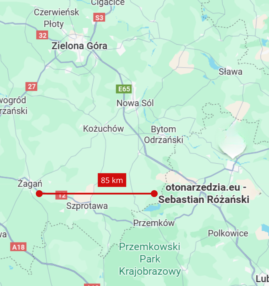 Z centrum Żagania do sklepu otonarzedzia.eu w Grębocicach