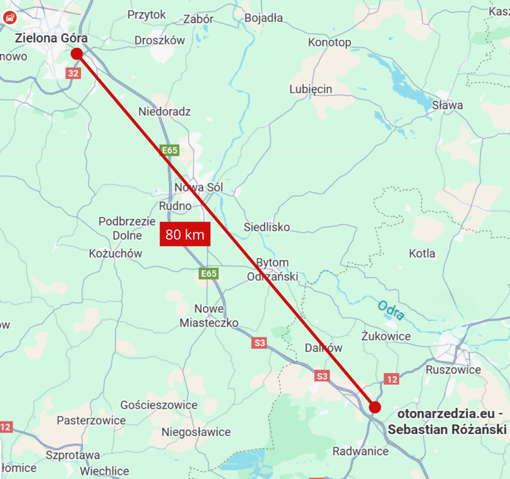 Z centrum Zielonej Góry do sklepu otonarzedzia.eu w Grębocicach