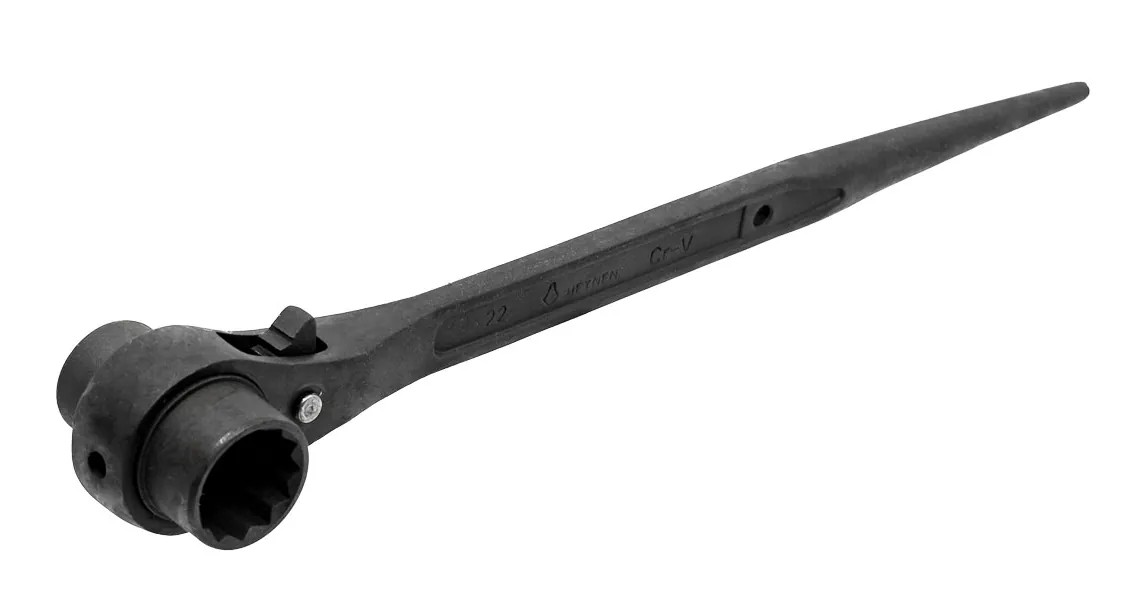 HEYTEC Klucz do rusztowań 19x22 mm to profesjonalne narzędzie przeznaczone do montażu i demontażu konstrukcji rusztowaniowych. Wyposażony w przelotową grzechotkę dwukierunkową oraz stożkową rękojeść, umożliwia szybkie dokręcanie, odkręcanie i centrowanie elementów stalowych jednym narzędziem. Wykonany z wytrzymałej stali narzędziowej, zapewnia niezawodność w wymagających warunkach budowlanych.