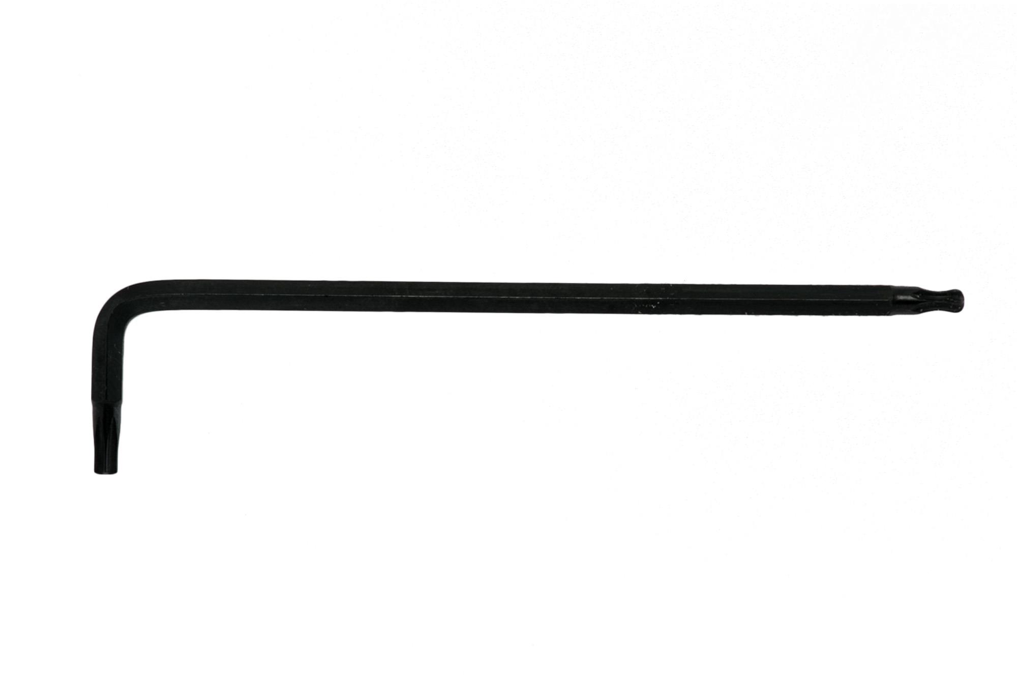 Do gniazd systemu Torx. Ze stali chromowo-wanadowej. Dłuższy koniec z frezowaniem w kształcie kulistym, umożliwiającym pracę przy przechyle do 20°. Hartowany do HRC 55-58.