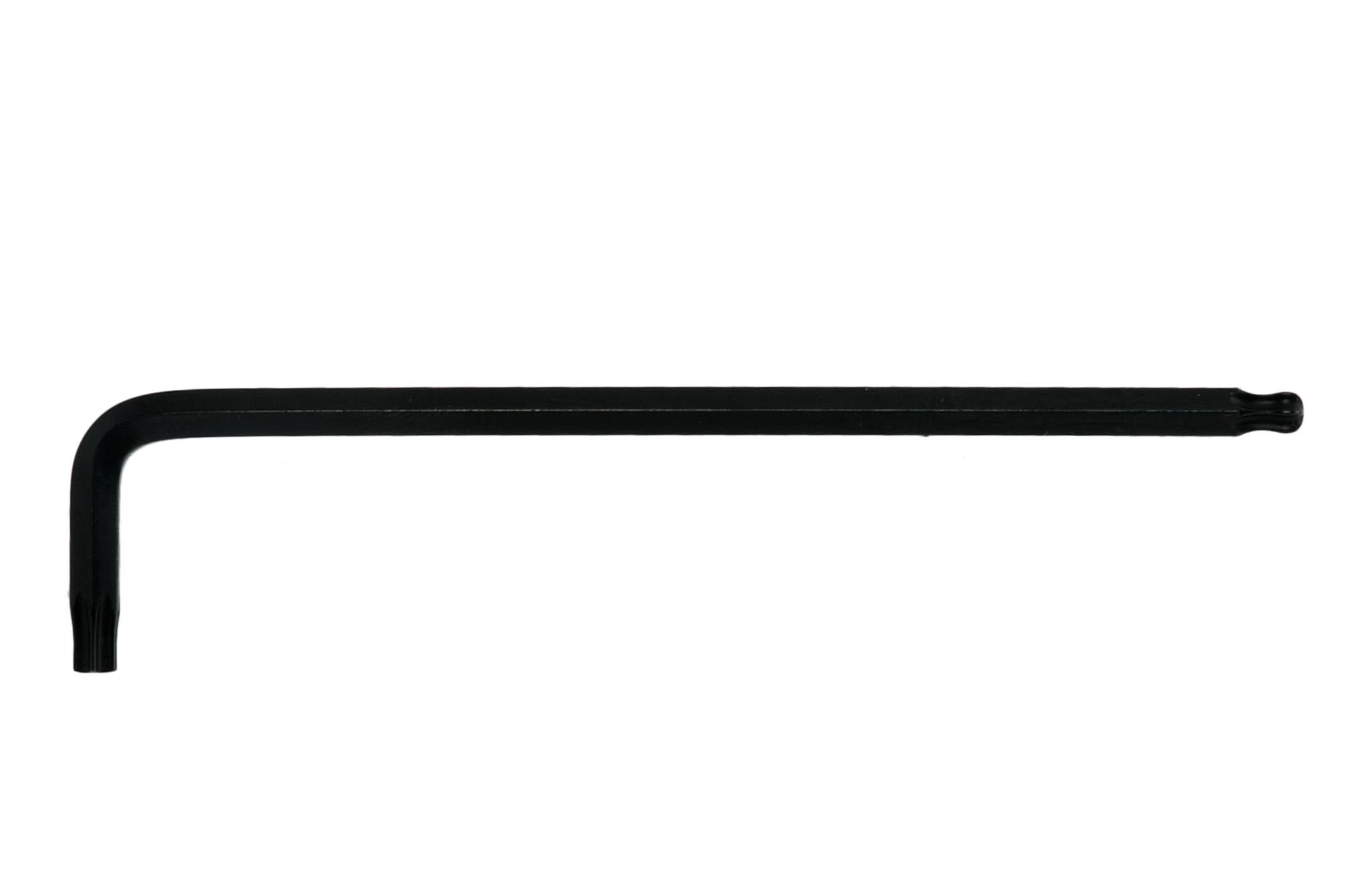 Do gniazd systemu Torx. Ze stali chromowo-wanadowej. Dłuższy koniec z frezowaniem w kształcie kulistym, umożliwiającym pracę przy przechyle do 20°. Hartowany do HRC 55-58.