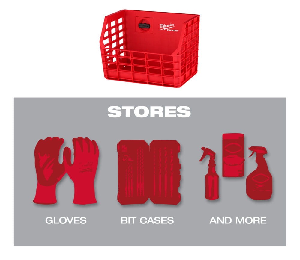 Koszyk z otworami PACKOUT to elastyczny i trwały moduł przechowywania, który zwiększa funkcjonalność Twojego zestawu Milwaukee PACKOUT. Dzięki możliwości montażu i otwartej konstrukcji łatwo uporządkujesz narzędzia i akcesoria, a mechanizm Click & Lock zapewni stabilność nawet w trudnych warunkach pracy.