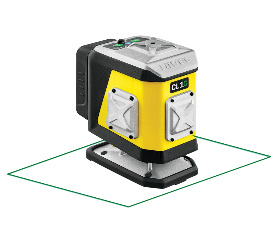 CL1G Nivel System laser 1-płaszczyznowy zielony posiada jedną głowicę laserową w zakresie 360°. Rzutuje idealnie spoziomowaną linię odniesienia (poziomą). Laser jest polecany do niwelacji klasycznej. Blokada kompensatora umożliwia pochylanie i korzystanie ze skosów. Uniwersalny rozmiar gwintu umożliwia pewne i stabilne mocowanie instrumentu na półce laserowej, statywie czy adapterze. Elementy obudowy z miękkiego tworzywa dają pewny chwyt i chronią przed skutkami uderzeń.
