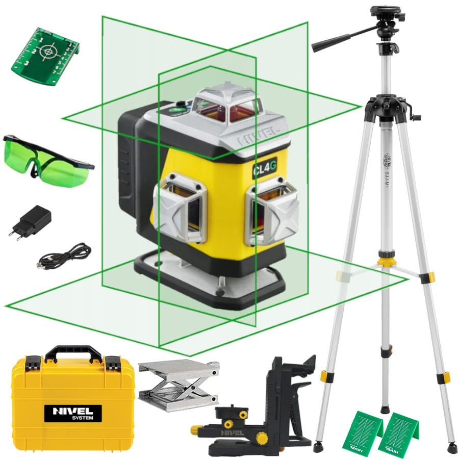 Laser 4-płaszczyznowy krzyżowy zielony Nivel System CL4G + statyw SJJM1EX