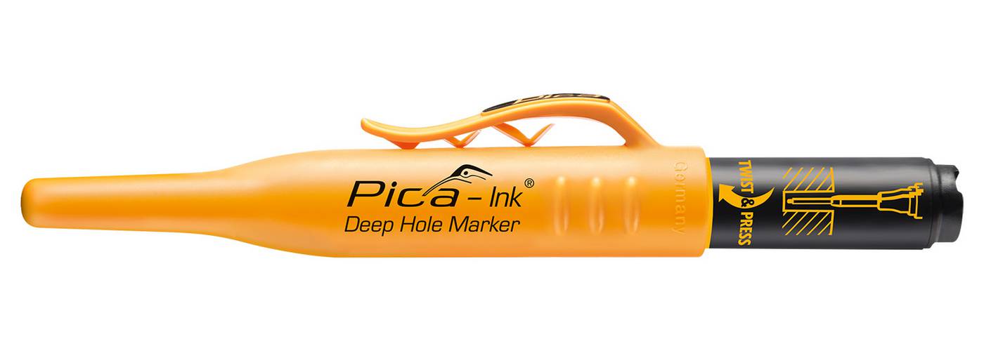 Marker działa na drewnie, metalu, betonie, plastiku, szkle i innych materiałach używanych w budownictwie i przemyśle.