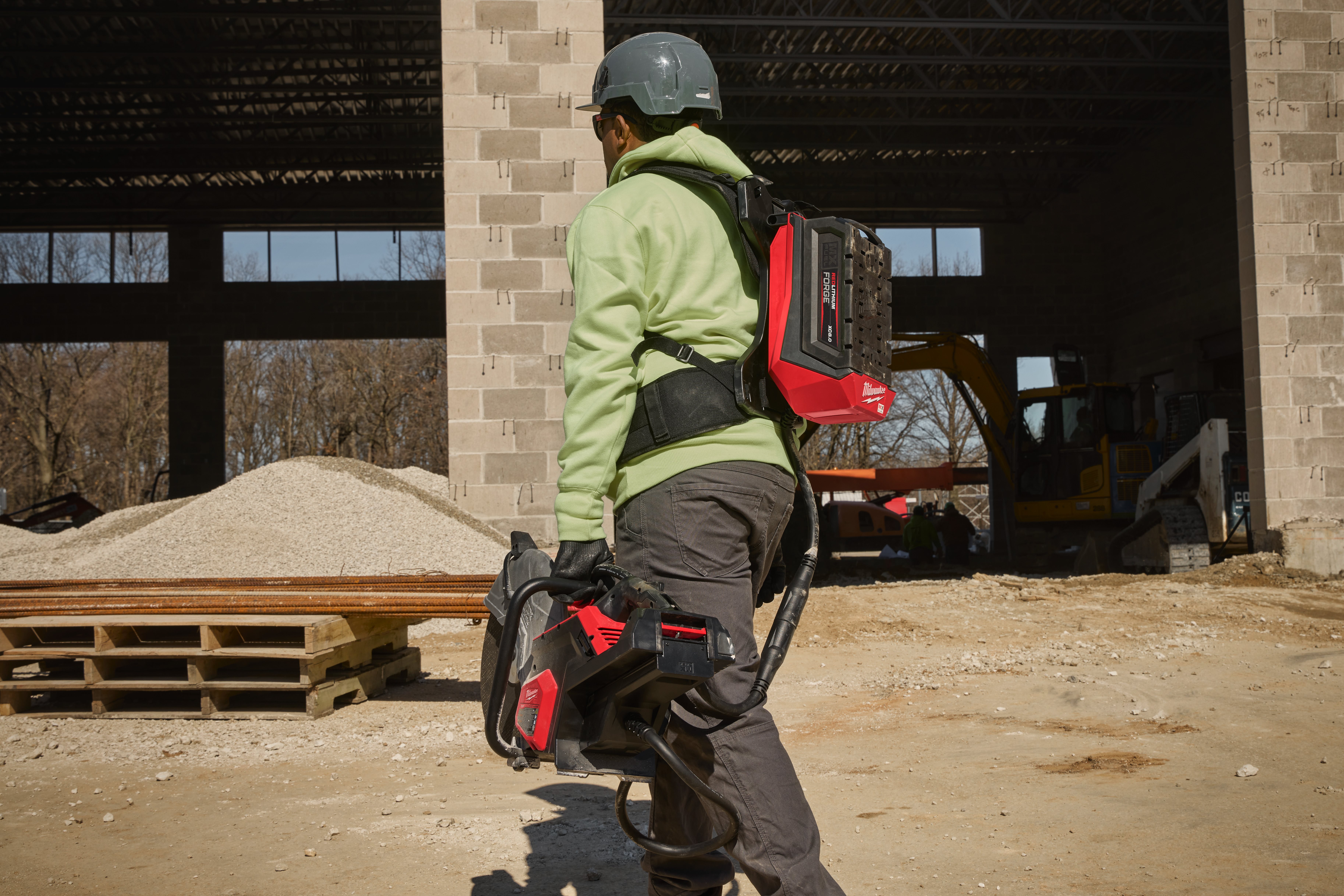 • Zmniejsza wagę elektronarzędzia o do 45% dzięki przeniesieniu akumulatora na plecy.