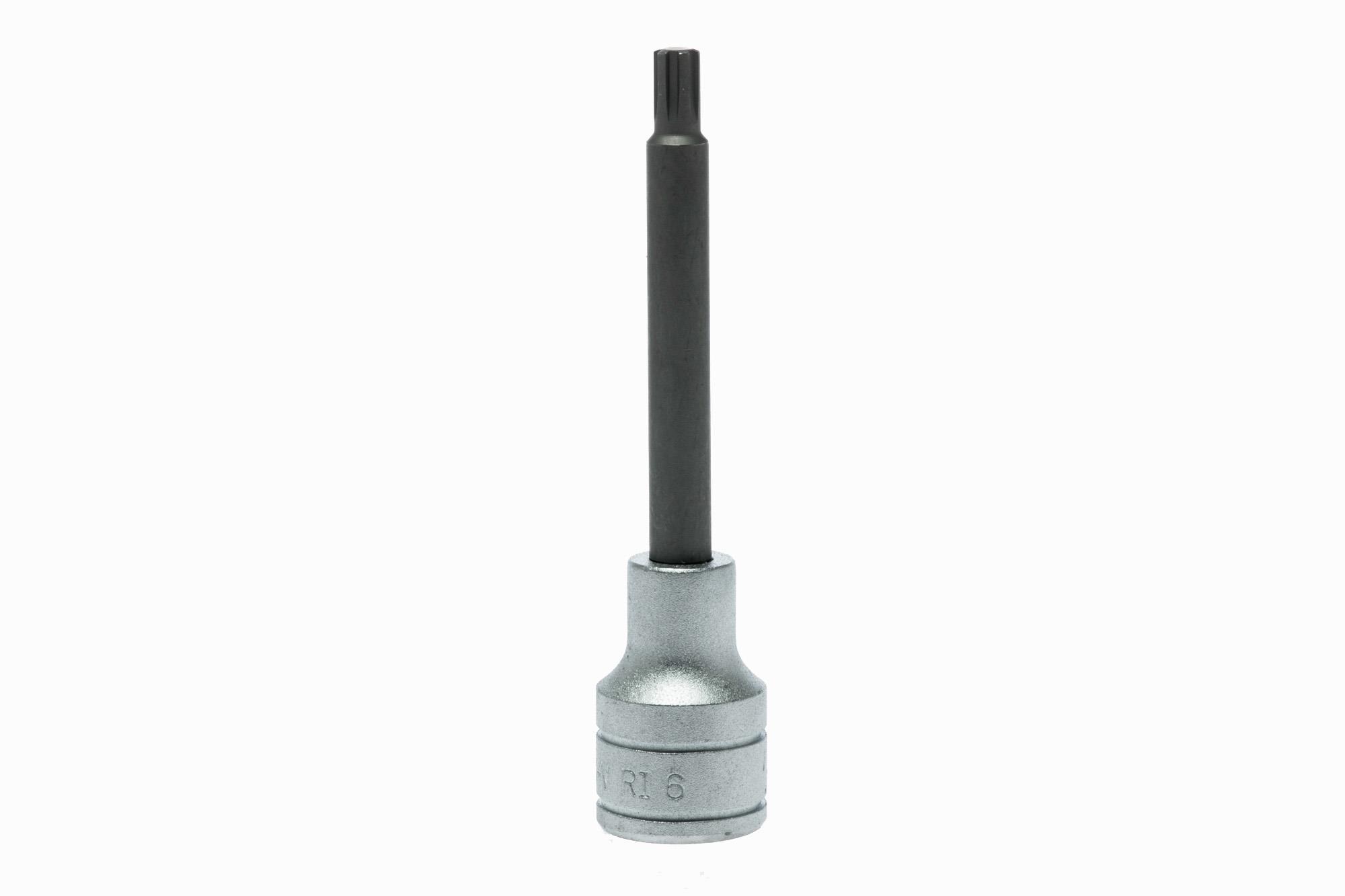 Nasadki trzpieniowe długie do śrub z łbem gniazdowym typu Ribe. Ze stali chromowo-wanadowej. Chromowane na mat.