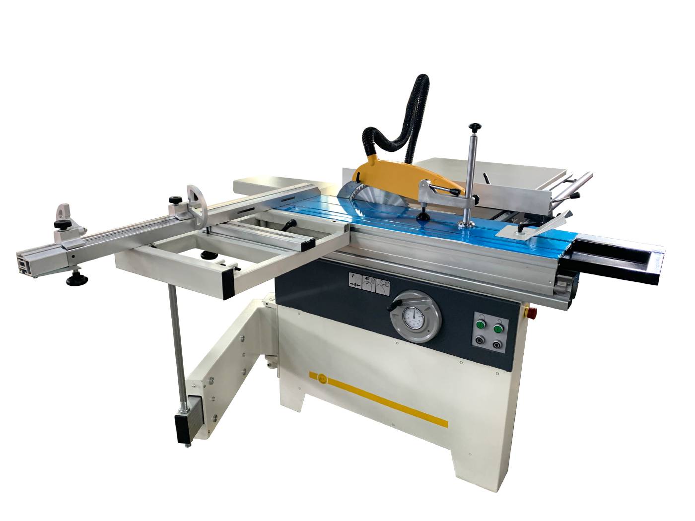 Pilarka formatowa z podcinaczem. Podstawa o ciężkiej konstrukcji stalowej. Żeliwny stół roboczy z ruchomym stołem aluminiowym ułożyskowanym kulkowo, wyposażony w blat dodatkowy z kształtownika stalowego, nastawianą przykładnię oporową oraz ruchome ramię. Piła tarczowa może być podnoszona lub opuszczana z wykorzystaniem śrubowego wrzeciona, ponadto przechylana do cięcia uciosowego pod kątem 45°. Skok roboczy stołu 120 cm. Klasa szczelności IP54. Dostarczana ze stołem ruchomym, urządzeniem podcinającym, klinem rozszczepiająco-prowadzącym, osłoną piły, silnikiem 400 V z wyłącznikiem zwalnianym przy zaniku napięcia, oraz piłami z zębami z węglików spiekanych 315 mm (1 szt.) i 120 mm (1 szt). Stół stały pilarki 1010×1065 mm.
