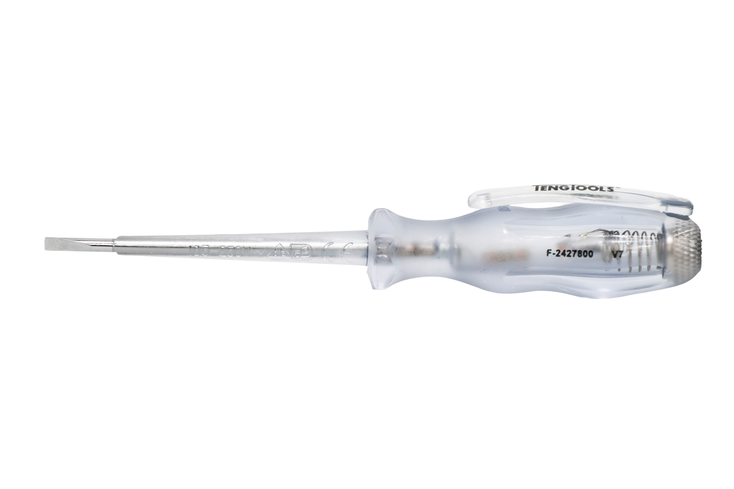 Izolowany próbnik napięcia z zaczepem do kieszonki, na zakres napięcia 100 - 250 V.