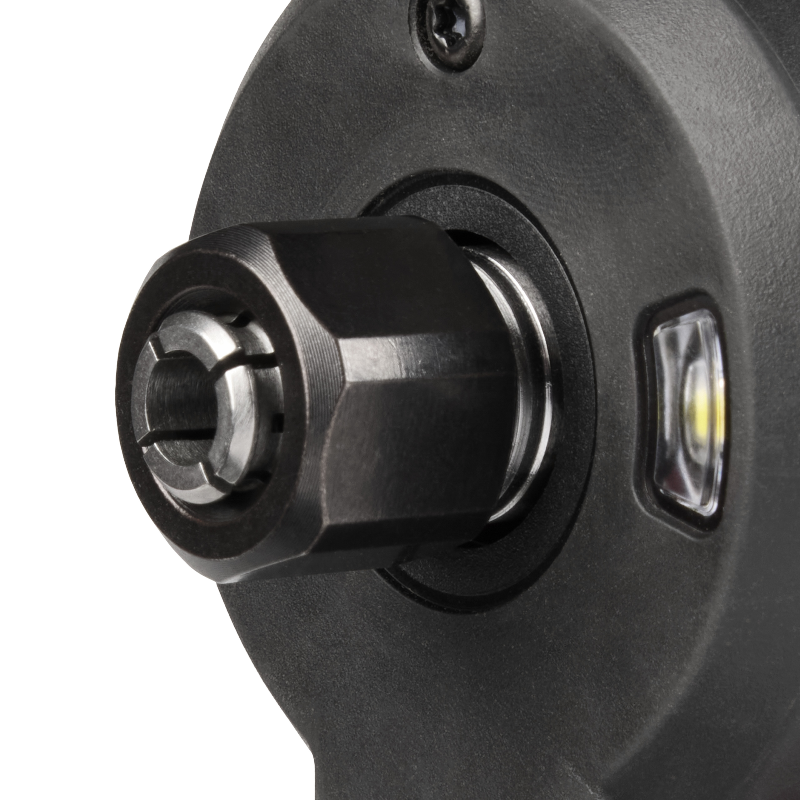 • Maksymalna kontrola przy pracy z każdym materiałem, 4-stopniowy tryb prędkości i spust regulacjący prędkość, idealna do pracy ze stalą nierdzewną, akcesoriami z węglików spiekanych i akcesoriami o długości do 76 mm