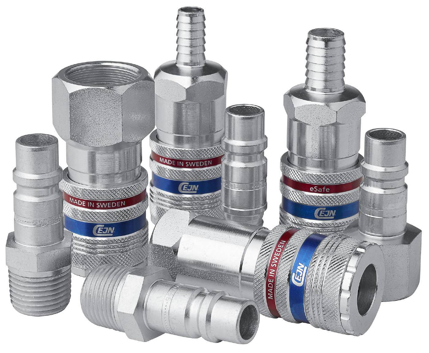 Złączki serii eSafe 550 są to szybkozłącza wygodne w użyciu, funkcjonujące w pełni automatycznie. Są mniejsze, znacznie bardziej kompaktowe, i odznaczają się wyższą przepływnością niż porównywalne produkty. eSafe są to złączki obsługiwane jedną ręką, typu bezpiecznego, które odpowietrzają się przed rozłączeniem, co eliminuje ryzyko odrzutu węża. eSafe spełniają normy ISO 4414 i EN 983. Zakres temperatury: -20°C - +100°C. Przepływność powietrza przy ciśnieniu wejściowym 6 barów i przy ?p 0.5 bar wynosi 4050 l/min. Maks. zalecane ciśnienie robocze: 16 bar, minimalne ciśnienie rozrywające: 140 bar.