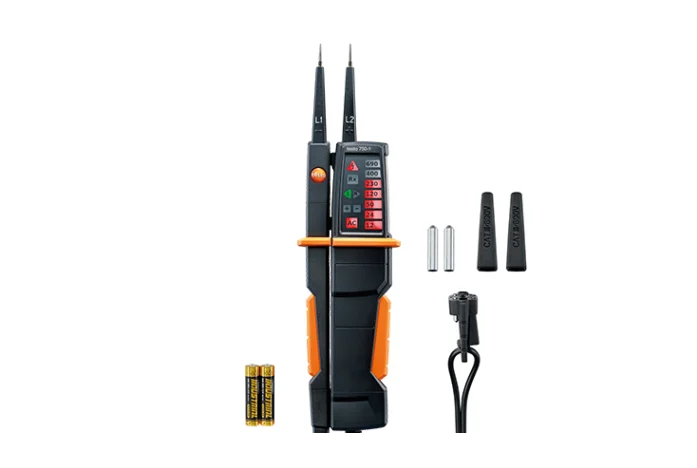 Tester napięcia testo 750-1 idealnie nadaje się do wykrywania obecności napięcia, testowania kierunku wirowania faz oraz kontroli ciągłości obwodu. Znajduje zastosowanie w serwisach elektrycznych, instalacjach przemysłowych, budynkach mieszkalnych i systemach HVAC.