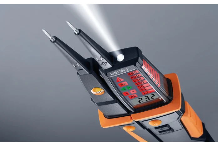 Tester napięcia testo 750-3 łączy precyzję, bezpieczeństwo i wygodę pracy. Dzięki wyświetlaczowi LCD użytkownik uzyskuje dokładny odczyt wartości napięcia, a dodatkowe funkcje – takie jak test faz i wibracyjna sygnalizacja – zwiększają pewność pomiaru i komfort pracy.