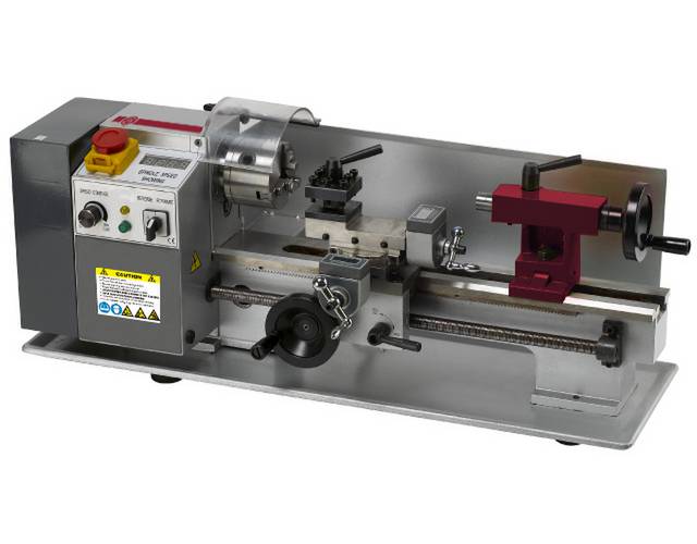 Tokarka suportowa, odpowiednia do modelowni, narzędziowni, warsztatów mechaniki precyzyjnej, zakładów serwisowych i naprawczych. Do obróbki metali, tworzyw sztucznych itp. Sztywne łoże pryzmowe, zapewniające precyzyjne prowadzenie suportu i konika. Główne wrzeciono osadzone w mocnych, precyzyjnych łożyskach kulkowych. Przekładnia wariatorowa zapewnia płynną regulację prędkości. Dostarczana w komplecie z silnikiem o jednej prędkości - klasa ochronna obudowy IP 54, uchwytem tokarskim ? 80 mm ze szczękami 2x3 i kołnierzem pośrednim, kłami stałymi, poczwórnym imakiem do narzędzi 15 mm. Cyfrowe wskazanie prędkości obrotowej oraz pozycji sanek poprzecznych i podłużnych.