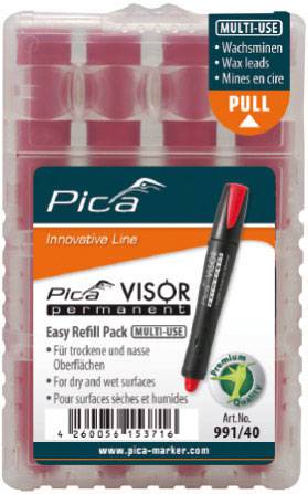 Sztyfty zapasowe Pica Visor 293471109 to wysokiej jakości wkłady czerwone do markerów Pica Visor. Zapewniają trwałe, wyraźne oznaczenia na różnych powierzchniach i pozwalają na szybkie uzupełnienie markera bez przerywania pracy.