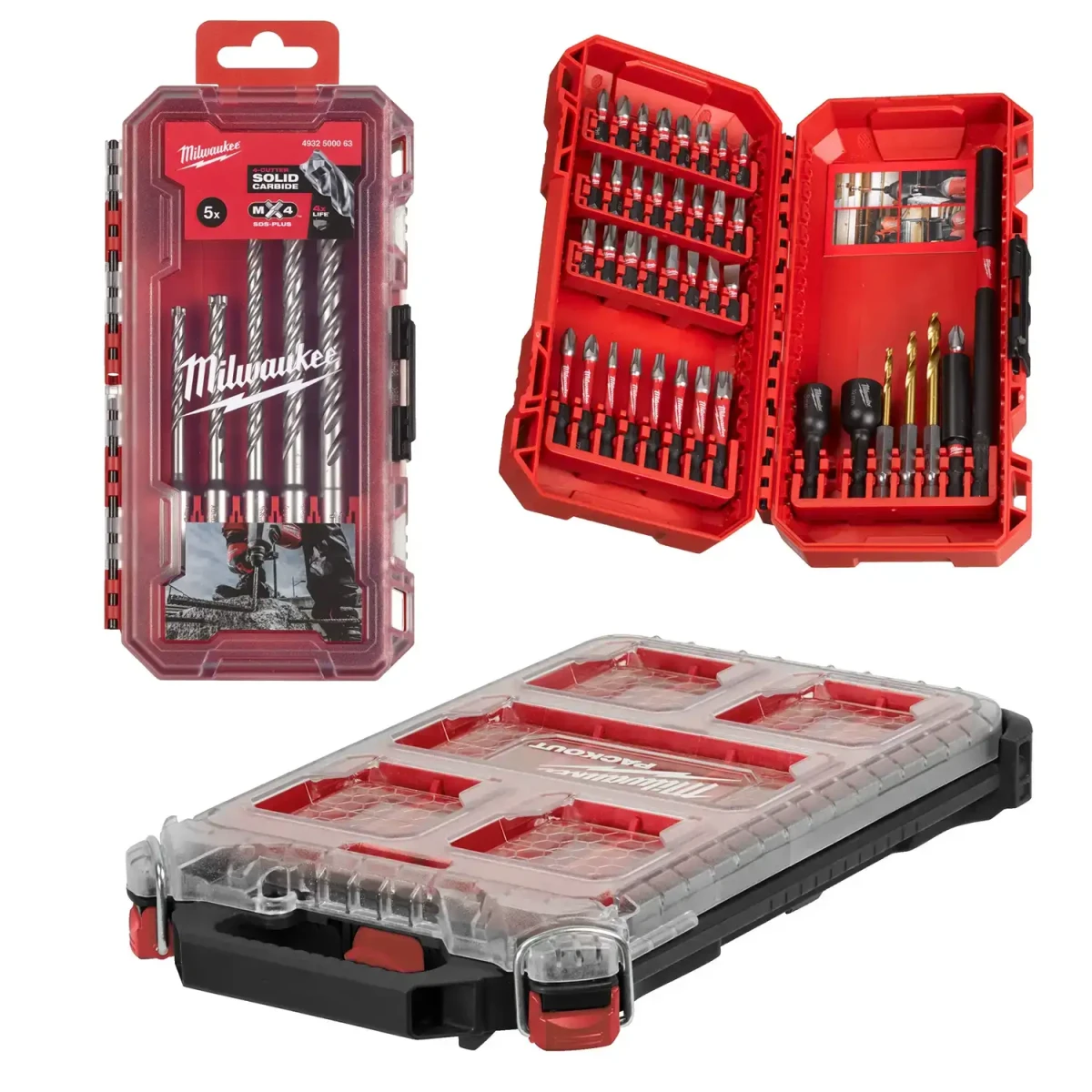 Zestaw akcesoriów 45 szt. PACKOUT (nr kat. 4932499761) to kompletny zestaw bitów, wierteł, nasadek i przedłużek w dużym organizerze PACKOUT™, stworzony z myślą o profesjonalnym użytkowaniu. Wyposażony w bity udarowe SHOCKWAVE™ IMPACT DUTY, wiertła SDS-Plus MX4 oraz wytrzymały organizer zapewnia wygodę, bezpieczeństwo i pełną organizację narzędzi w miejscu pracy.