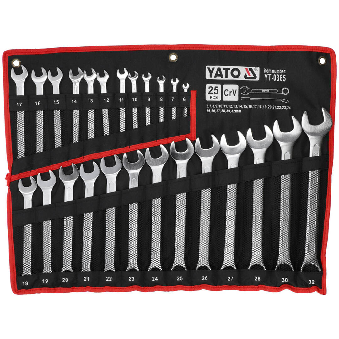 Zestaw kluczy płasko-oczkowych Yato YT-0365 25 el. to kompletny i trwały zestaw narzędzi dla profesjonalistów. Dzięki 12-kątnym oczkom, odchylonym główkom i wysokiej jakości materiałowi, zapewnia wygodę, precyzję oraz bezpieczeństwo w codziennej pracy warsztatowej.