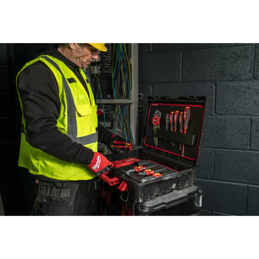 Zestaw narzędzi ręcznych dla elektryka 62 szt. PACKOUT (nr kat. 4932499466) to kompletny, profesjonalny zestaw narzędzi ręcznych przeznaczony dla elektryków i instalatorów. Wszystkie narzędzia zostały umieszczone w wytrzymałym organizerze PACKOUT™, zapewniając optymalną organizację, bezpieczeństwo i wygodę pracy.