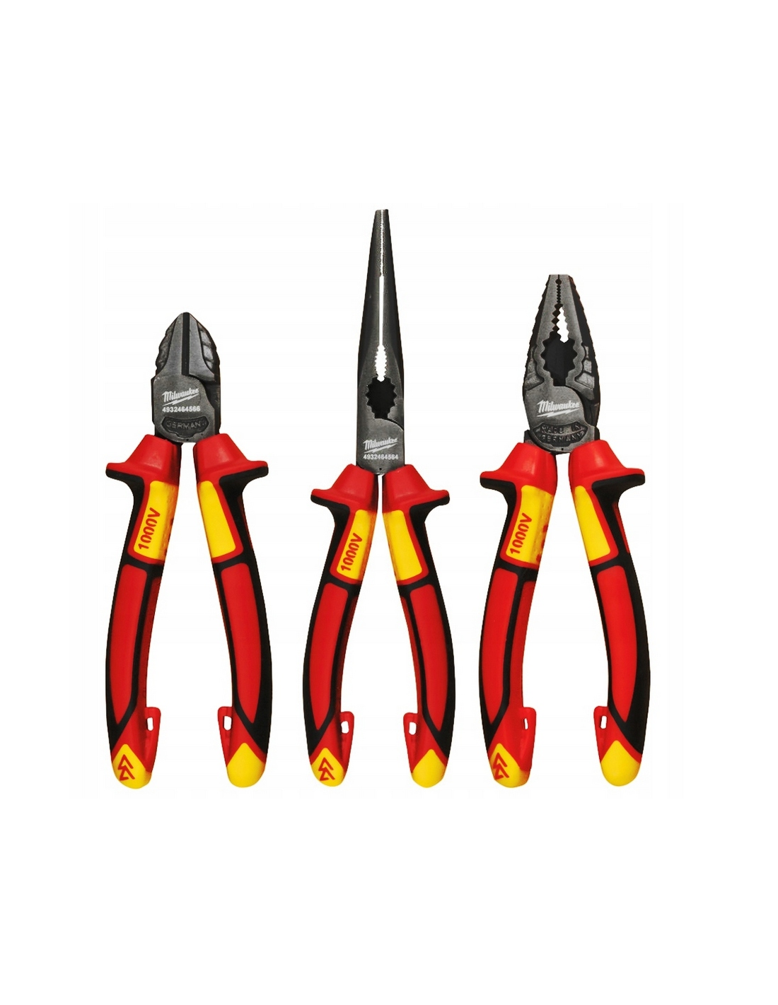 Zestaw szczypiec VDE 3 szt. Milwaukee to niezawodny komplet dla elektryków i profesjonalistów, którzy potrzebują bezpiecznych, trwałych i ergonomicznych narzędzi do pracy przy instalacjach elektrycznych. Certyfikowana izolacja VDE zapewnia komfort i bezpieczeństwo w każdych warunkach pracy.