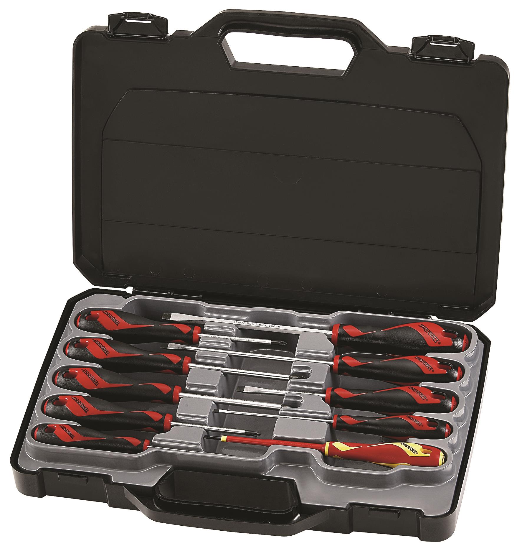 Zestaw 10 wkrętaków - płaskich oraz krzyżowych Phillips i Pozidriv. Stal TTMV-PLUS. Ergonomiczna rękojeść dwukomponentowa dla zapewnienia jak najlepszego chwytu. Dostarczany w kasecie z tworzywa sztucznego.