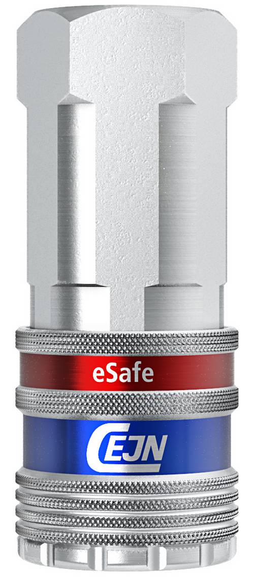 Średnica światła przepływu 7.6 mm. eSafe 320 jest to złącze typu bezpiecznego, z tulejką zewnętrzną i korpusem wykonanym ze stali pokrytej elektrolitycznie cynkiem, bez zawartości szkodliwego dla środowiska chromu 6, a ponadto odznaczające się jeszcze lepszą odpornością na zużycie i korozję. Złącza są bardzo bezpieczne, obsługiwane jedną ręką przy łączeniu, ale dwiema rękami przy rozłączaniu. Rozłączanie złącz bezodrzutowych odbywa się dwustopniowo, tak aby najpierw odpowietrzyć złącze, i w ten sposób zminimalizować ryzyko odskoczenia końcówki węża i wyrządzenia szkód. Mała siła potrzebna do rozłączania oraz niski przy tym poziom hałasu tworzą bardziej bezpieczne środowisko pracy. Budowa złączek jest w pełni metalowa, zapewniająca doskonałe właściwości przepływowe, które umożliwiają dołączanie narzędzi pneumatycznych dużych mocy, przy zapewnieniu niskich spadków ciśnienia w systemie. Przepływność 2250 l/min, przy spadku ciśnienia 0.5 bar. Spełniają normy ISO 4414 i EN 983. Zakres temperatury pracy: -20°C - +80°C. Maks. ciśnienie robocze 12 bar. Kompatybilne z Rectus 25. Przegląd różnych systemów szybkozłączy kompatybilnych z poszczególnymi seriami Cejn.